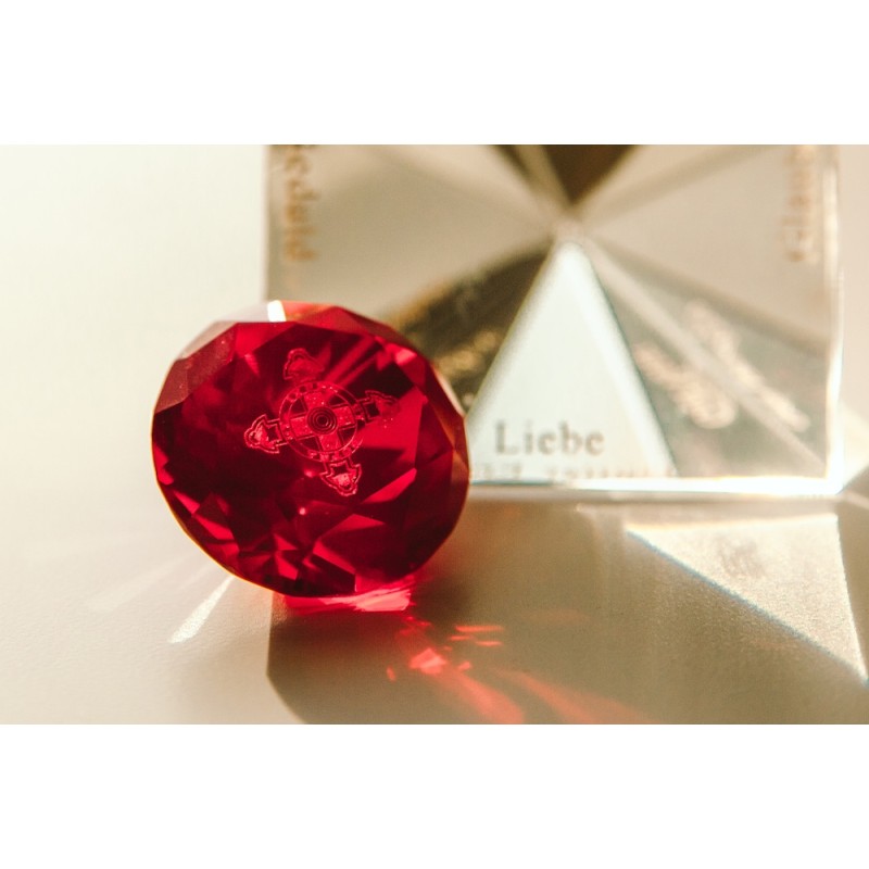 Dieser runde, rote Kristall ist 30 mm groß und wird in einem kleinen Beutel geliefert – so kann man ihn immer bei sich tragen.