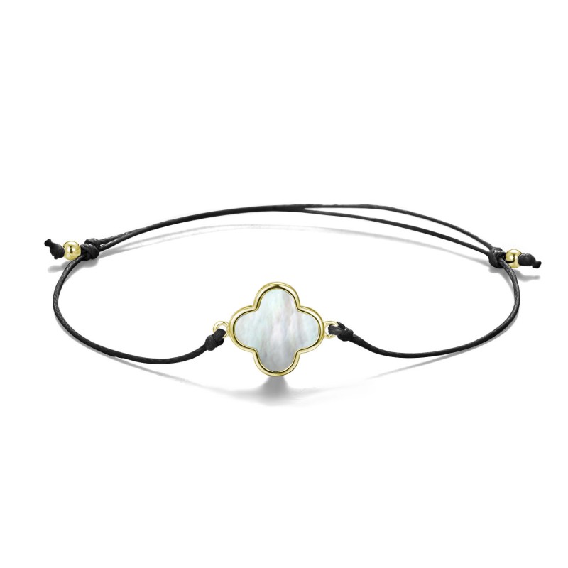 Kleeblatt mit Schutzkreuz eingraviert als Armband in 925 Silber 11mm vergoldet