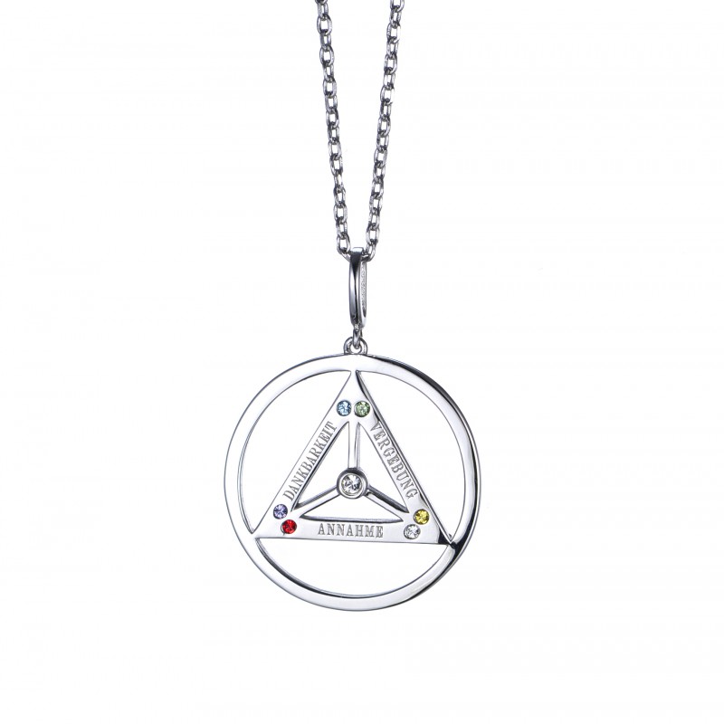 Die Kettenanhänger gibt es in Form eines Dreieckes oder eines Viereckes. Beide Varianten wirken durch die Kraft der Information, durch das eingravierte Wort und die eingelassenen Edelsteine, die wiederum die Urelemente verkörpern.