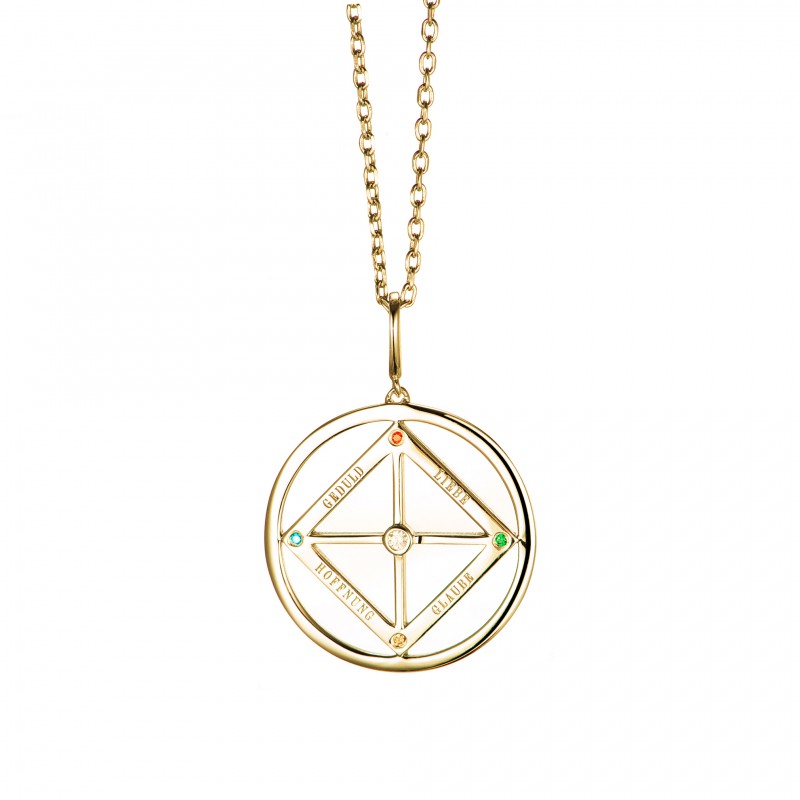 Die Kettenanhänger gibt es in Form eines Dreieckes oder eines Viereckes. Beide Varianten wirken durch die Kraft der Information, durch das eingravierte Wort und die eingelassenen Edelsteine, die wiederum die Urelemente verkörpern.