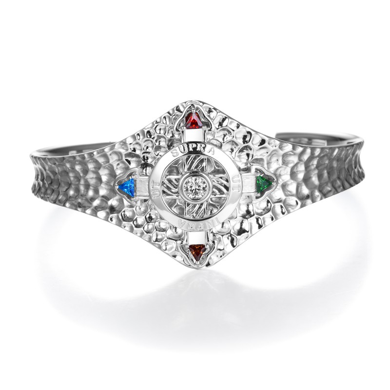 Das Schutzkreuz ist aus echtem Silber 925 handgefertigt und ist mit echten dreieckigen Steinen, rot, braun, grün, blau eingefasst.